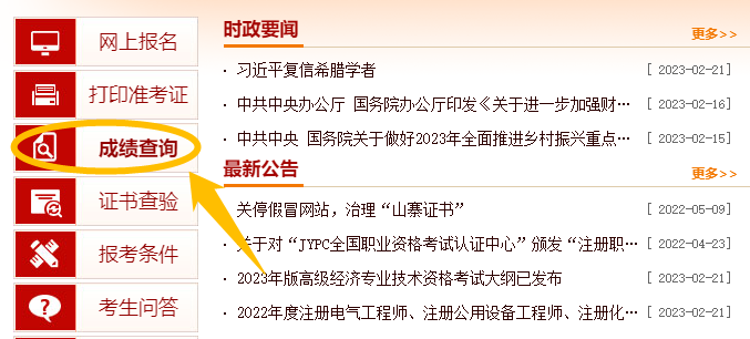 1、进入中国人事考试网,点击左侧成绩查询