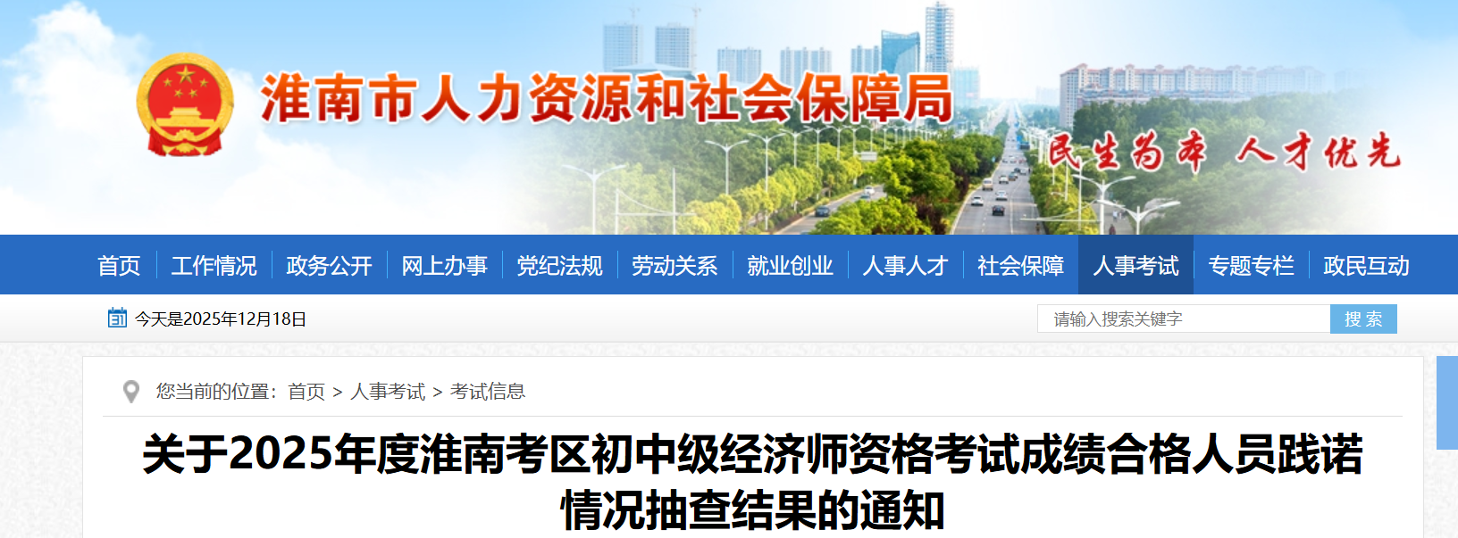 为切实加强事中事后监管,确保告知承诺制试点工作顺利推进,根据省人力资源和社会保障厅《关于专业技术人员资格考试告知承诺制试点工作有关事宜的通知》(皖人社秘〔2020〕41号)以及资格考试报名证明事项告知承诺制有关要求,我市对2025年度淮南考区初中级经济师资格考试,成绩合格人员报考资格条件进行随机抽查,抽查人员名单见附件。
