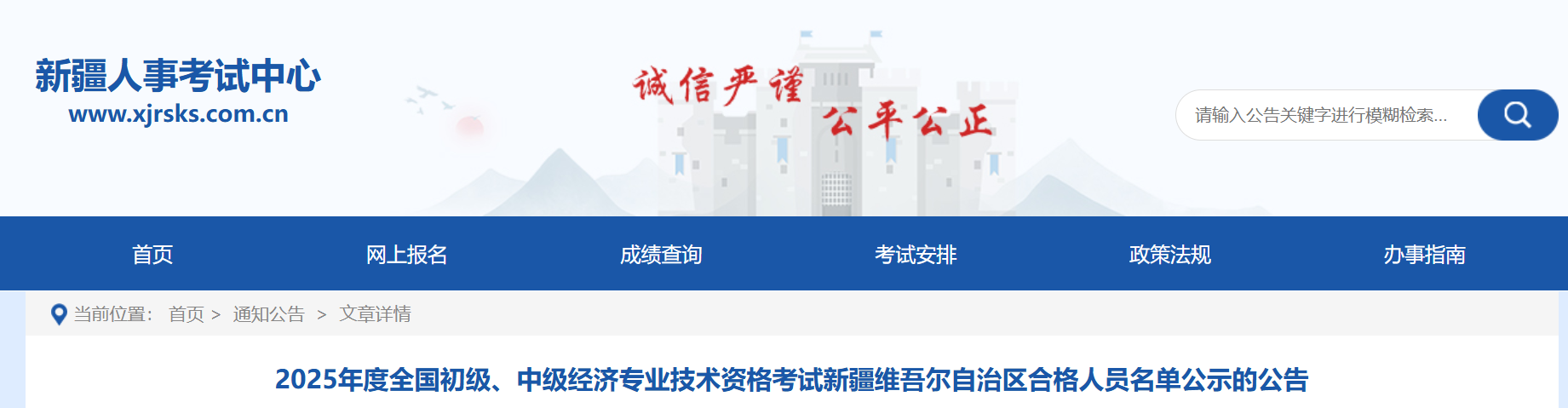 2025年度全国初级、中级经济专业技术资格考试新疆维吾尔自治区合格人员名单公示的公告