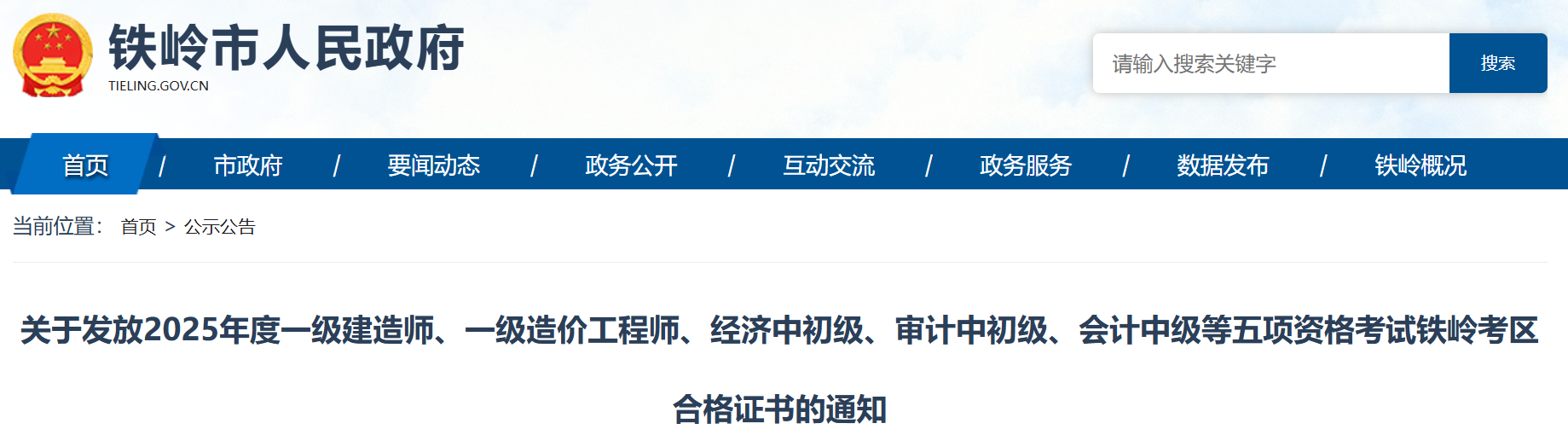 关于发放2025年度一级建造师、一级造价工程师、经济中初级、审计中初级、会计中级等五项资格考试铁岭考区合格证书的通知