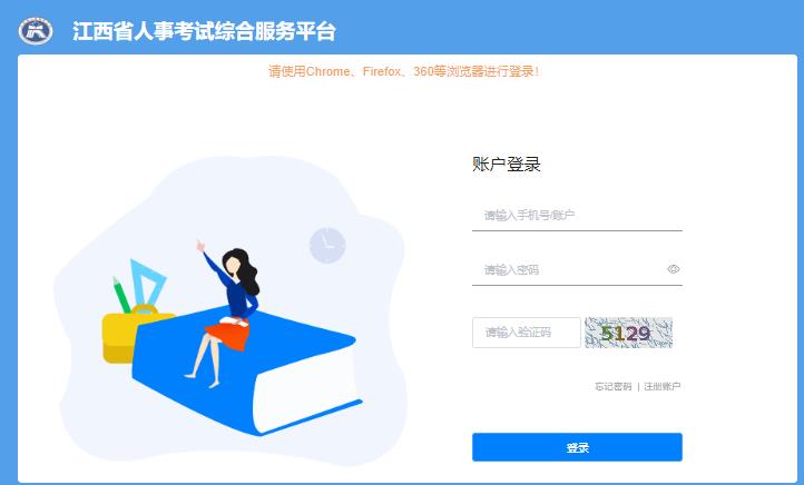 1、登录“江西省人事考试综合服务平台”(https://pta.jxhrss.gov.cn/#/login)