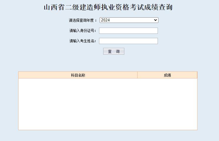 2024年山西二级建造师成绩查询官网:山西省人力资源和社会保障厅-人事考试专栏-成绩查询栏目(http://39.97.9.165:8089/cjcx_erjian/30434/userhtml/user_cjcx.html)