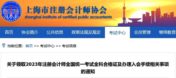 2024年1月15日,上海注册会计师协会发布了《关于领取2023年注册会计师全国统一考试全科合格证及办理入会手续相关事项的通知》,上海市2023年注册会计师全国统一考试全科合格证即日起(2024年1月25日)开始领取!