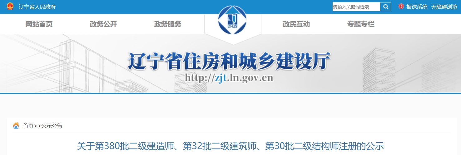 辽宁省住房和城乡建设厅于近日发布《关于第380批二级建造师注册的公示》,经审核,本批次共有626人人符合二级建造师初始注册条件,准予注册。