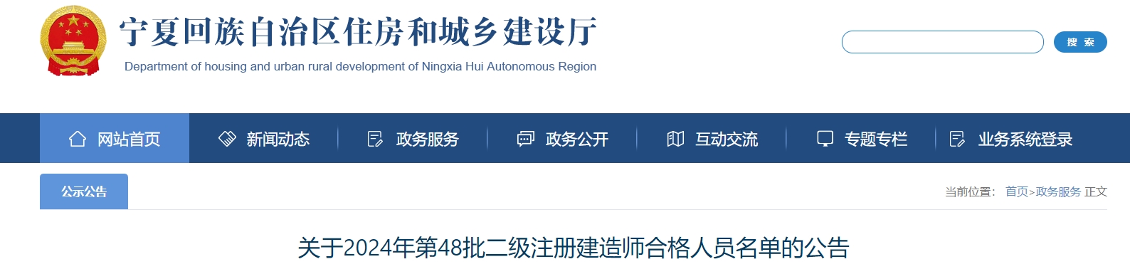 宁夏回族自治区住房和城乡建设厅于近日发布《关于2024年第48批二级注册建造师合格人员名单的公告》,本批次共有615人符合二级建造师注册条件,准予注册。