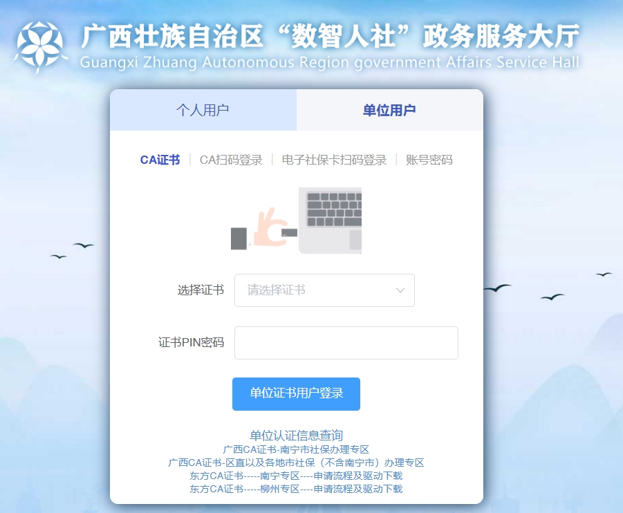 2.跳转到“广西壮族自治区‘数智人社’政务服务大厅”