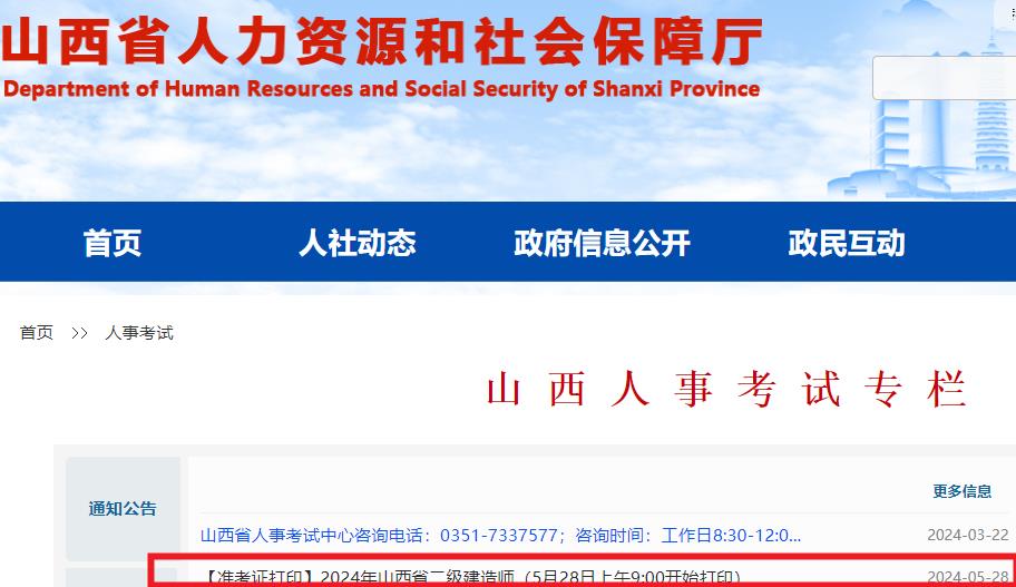2024年山西二级建造师准考证打印官网:山西省人力资源和社会保障厅-人事考试专栏(http://rst.shanxi.gov.cn/rsks)