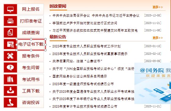 1、登录中国人事考试网,网址为http://www.cpta.com.cn/,找到电子证书下载