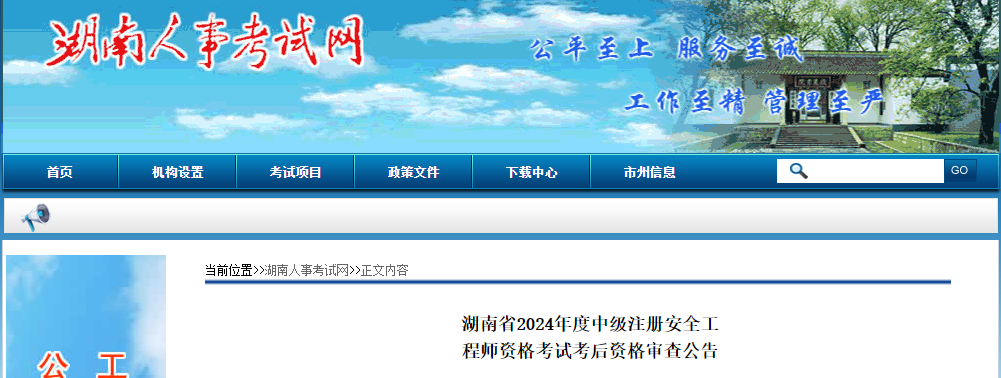 根据人力资源和社会保障部人事考试中心《关于印发〈专业技术人员职业资格考试报名证明事项告知承诺制工作规程〉的通知》(人考中心函〔2021〕1号)、湖南省人力资源和社会保障厅《关于专业技术人员资格考试实行考后资格审查的通知》(湘人社函〔2012〕526号)和湖南省人力资源和社会保障厅办公室《关于做好湖南省2024年度中级注册安全工程师职业资格考试有关考务工作的通知》(湘人社考函〔2024〕8号)等文件精神,现将2024年度中级注册安全工程师资格考试考后资格审查有关事项公告如下: