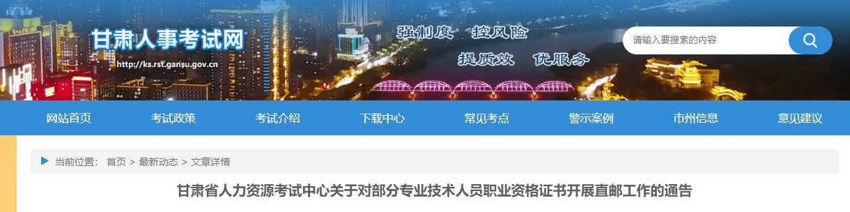 提示:未在直邮时间段申请邮寄信息的人员请关注“甘肃人事考试网” (https://ks.rst.gansu.gov.cn/ncms/index.shtml)“证书发放”栏目相关信息,查看其他领取方式及领取时间。