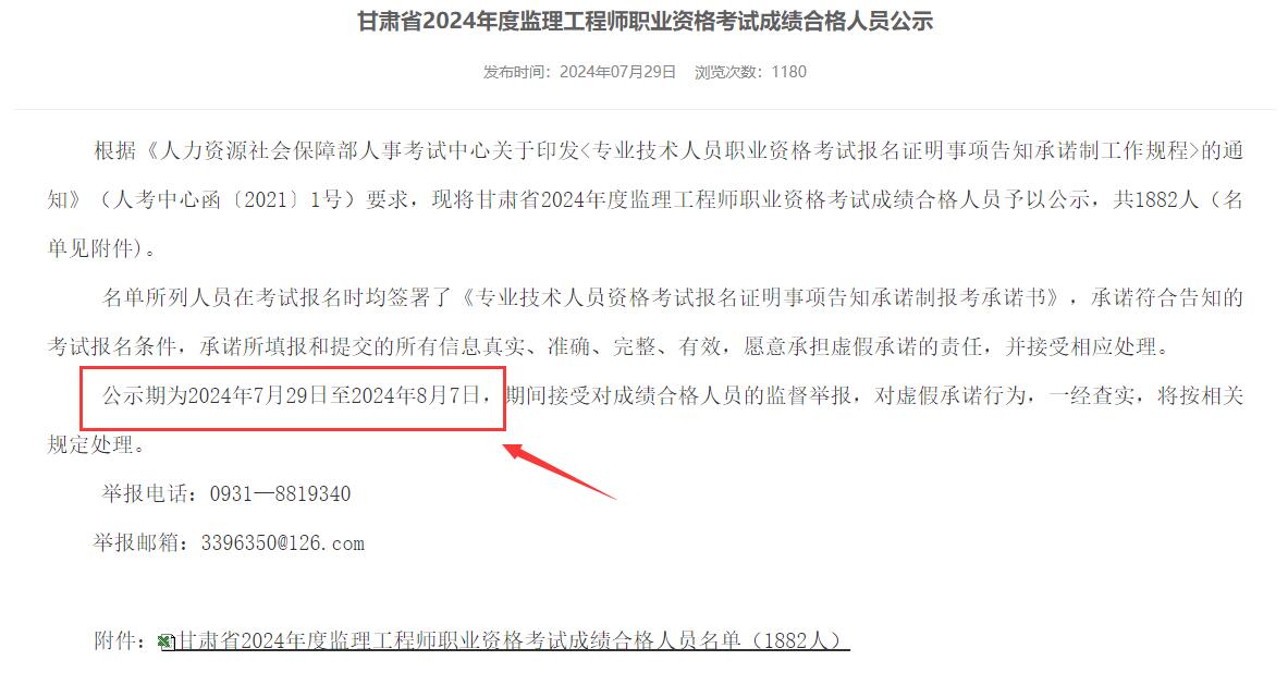 7月30日,甘肃人事考试网发布了“关于对部分专业技术人员职业资格证书开展直邮工作的通告”,明确甘肃省自2024年8月起试行专业技术人员职业资格证书直邮工作,其中包括监理工程师。