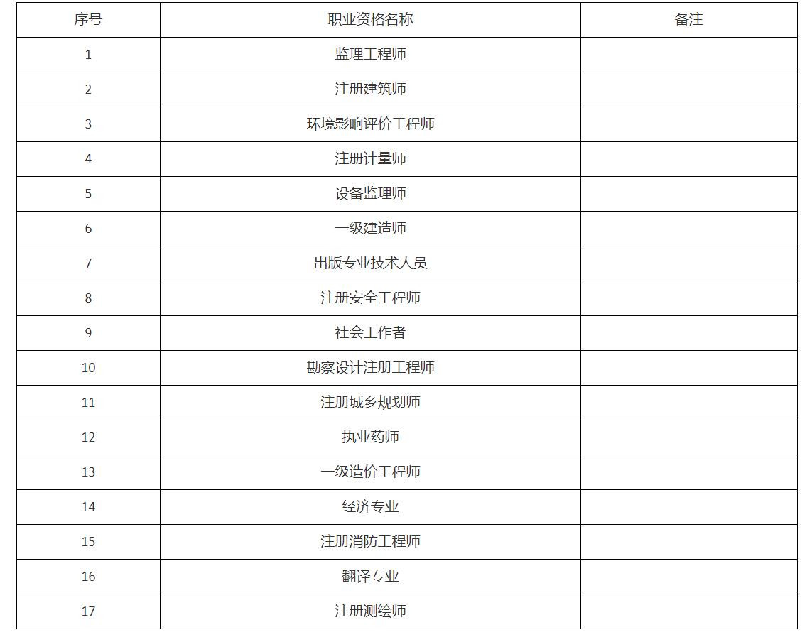 附表:试行证书直邮的17项专业技术人员职业资格考试目录