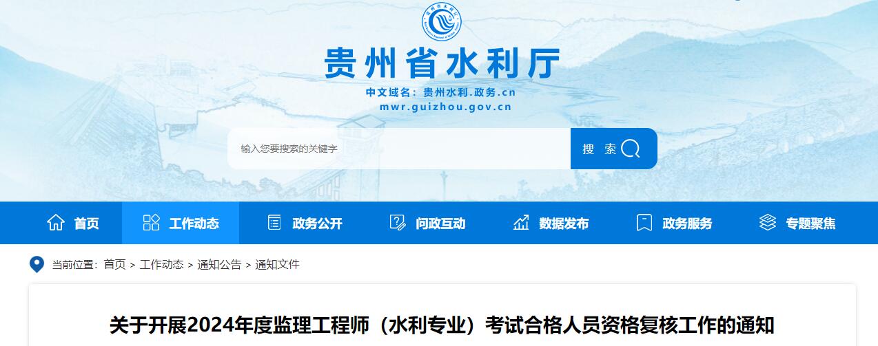 7月29日,贵州省水利厅发布了“关于开展2024年度监理工程师(水利专业)考试合格人员资格复核工作的通知”,本次资格复核采取线上受理方式。