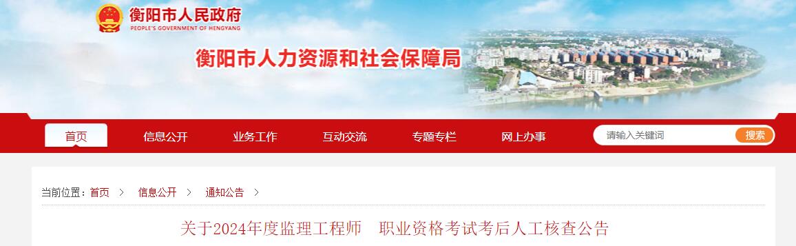 7月25日,衡阳市人力资源和社会保障局发布了“关于2024年度监理工程师职业资格考试考后人工核查公告”,审查资料提交时间:2024年7月31日。