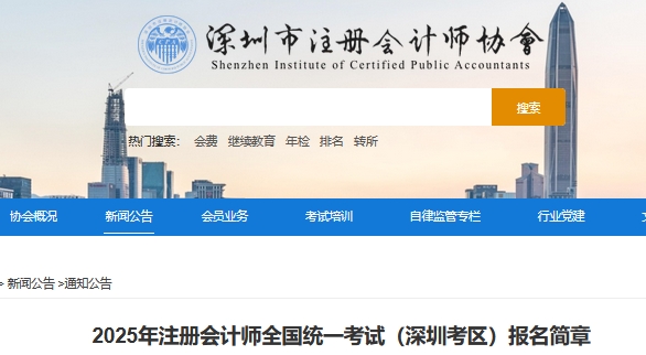根据《注册会计师全国统一考试办法》和《财政部注册会计师考试委员会关于印发〈2025年注册会计师全国统一考试报名简章〉的通知》的规定,深圳市将设专业阶段和综合阶段考试地点,选择深圳地区考试的考生,请按照深圳市注册会计师协会(简称深圳注协)相关要求进行报名交费,现将2025年注册会计师全国统一考试(深圳考区)专业阶段和综合阶段考试报名有关事项规定如下: