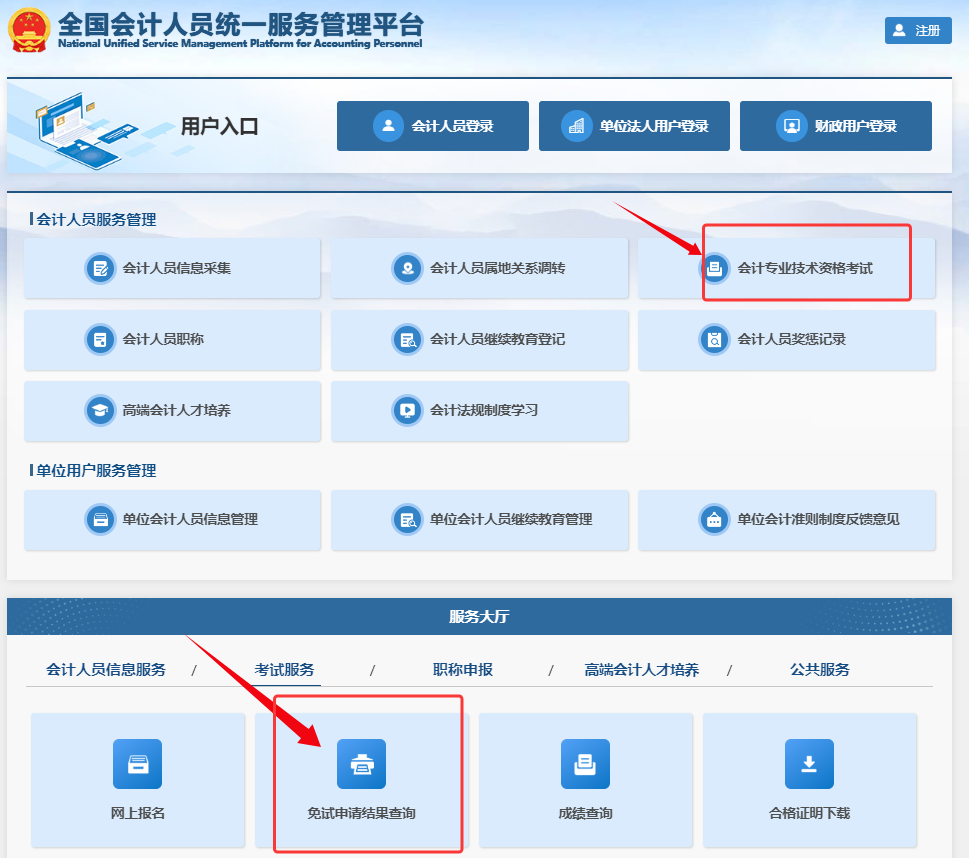 三、选择入“会计专业技术资格考试”模块进行报名;