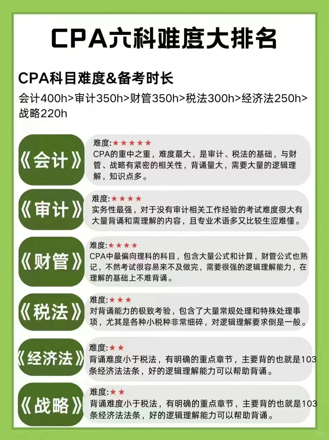 注册会计师各科目考试难度