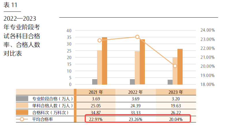 从近几年中注协公布的注册会计师考试通过率就可以看出:其实注册会计师专业阶段考试合格率都不到24%,从这也能感知到注会考试难度的威力。
