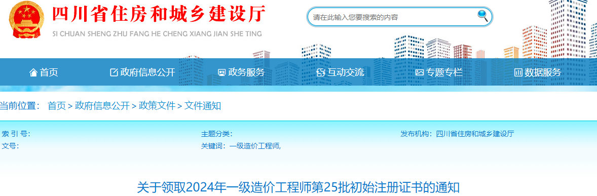 四川2024年第25批一级造价师初始注册证书领取通知原文如下:
