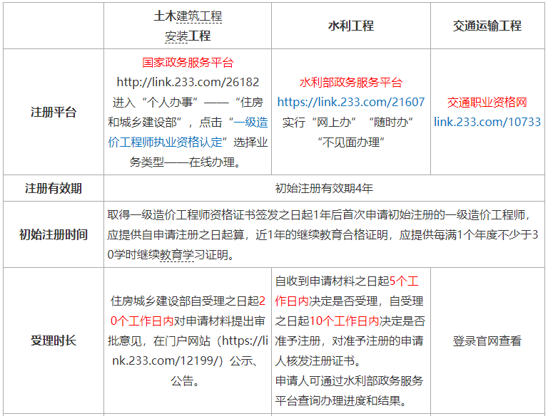 一级造价工程师在哪注册?四个专业注册平台不同,分别在国家政务服务平台、水利部政务服务平台、交通职业资格网进行网上注册,取得造价工程师职业资格证书且从事工程造价相关工作的人员,经注册方可以造价工程师名义执业。具体如下: