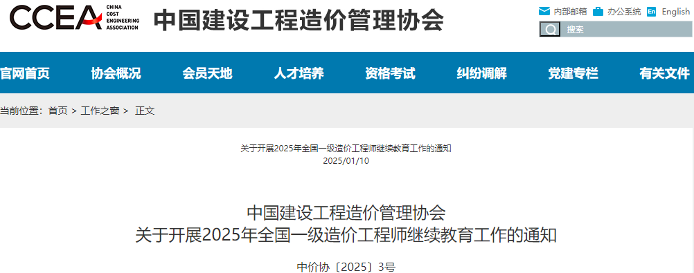 2025年一级造价师继续教育工作通知原文如下:
