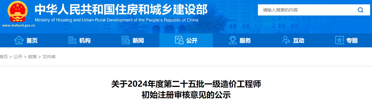 近日,中华人民共和国住房和城乡建设部发布了《关于2024年度第二十五批一级造价工程师初始注册审核意见的公示》,其中明确共有1020人符合一级造价师初始注册条件,522人不符合初始注册条件,并对相关人员信息予以公示。