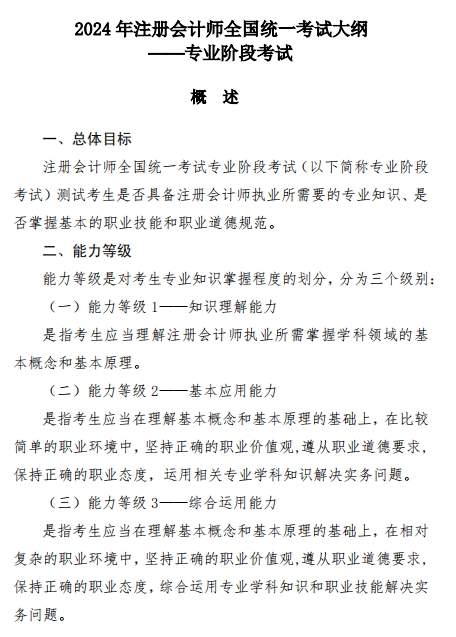 新大纲公布前,考生可以参考2024年注会考试大纲: