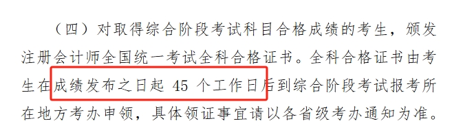 参加注册会计师全国统一考试的考生,取得职业能力综合测试合格成绩者,由财政部考办颁发全科合格证。凡取得职业能力综合测试合格成绩的考生,均可在网报系统自行查询、下载全科合格证电子证书。