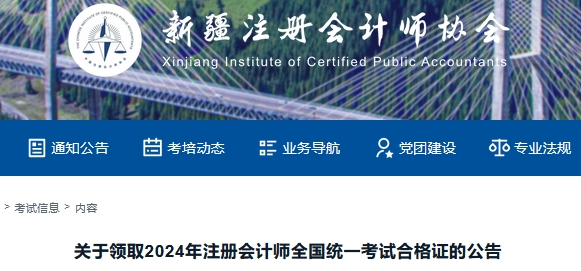 近日,新疆注册会计师协会发布了《关于领取2024年注册会计师全国统一考试合格证的公告》,2025年2月28日之前(不含公休日、法定节假日),考生本人持有效身份证原件,前往新疆注册会计师协会考试部领取注会纸质证书。