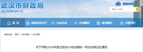 2024年注册会计师全国统一考试成绩已于2024年11月22日在中国注册会计师协会网站正式公布,现将武汉考区考生领取2024年考试合格证的有关事项通知如下: