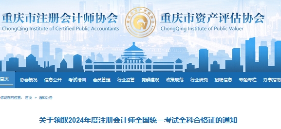 2025年1月2日,重庆注册会计师协会发布了《关于领取2024年度注册会计师全国统一考试全科合格证的通知》,重庆2024年注册会计师全科合格证2025年1月2日开始领取。
