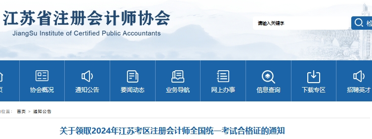 近日,江苏省注册会计师协会发布了《关于领取2024年江苏考区注册会计师全国统一考试合格证的通知》,其中公布了,2024年江苏注会考试领取纸质证书的时间为2025年1月15日后。