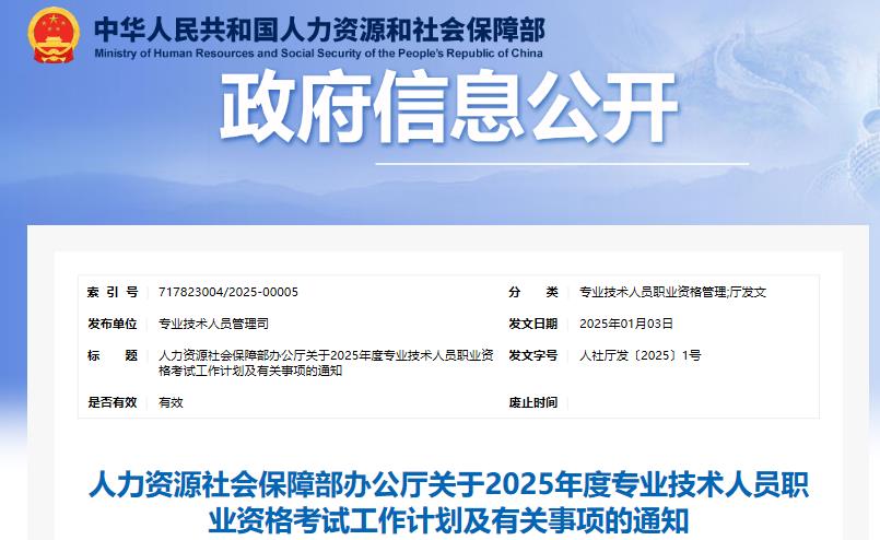 为做好专业技术人员职业资格考试规划和管理工作,便于广大专业技术人员参加职业资格考试,经商有关部门同意,现就2025年度专业技术人员职业资格考试工作计划及有关事项通知如下:
