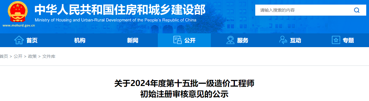 2024年7月5日,中华人民共和国住房和城乡建设部发布了《关于2024年度第十五批一级造价工程师初始注册审核意见的公示》,其中明确共有1557人符合一级造价师初始注册条件,487人不符合初始注册条件。