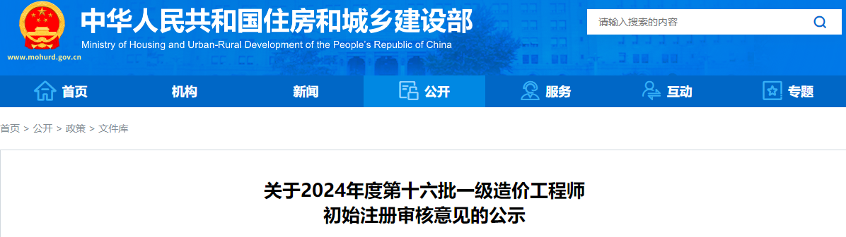 2024年7月16日,中华人民共和国住房和城乡建设部发布了《关于2024年度第十六批一级造价工程师初始注册审核意见的公示》,其中明确共有1675人符合一级造价师初始注册条件,501人不符合初始注册条件,并对相关人员信息予以公示。