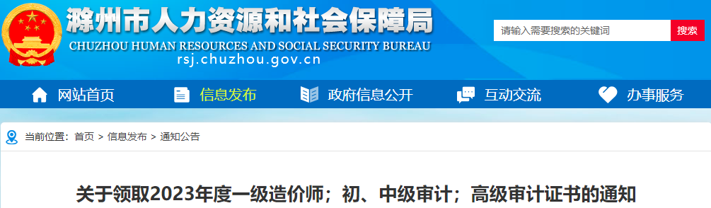 2024年2月20日,滁州市人力资源和社会保障局发布了《关于领取2023年度一级造价师;初、中级审计;高级审计证书的通知》,对该地一级造价师证书领取方式、时间、流程等作出具体说明。