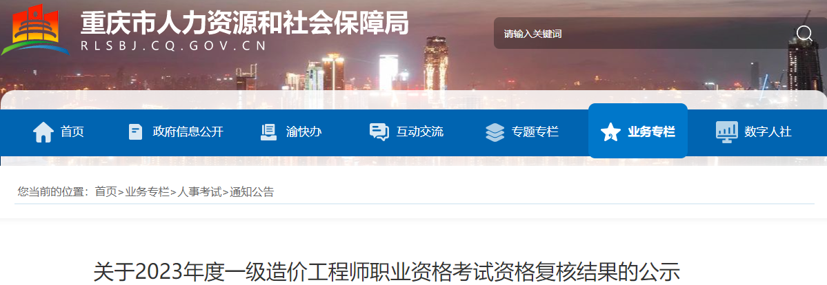 重庆市2023年一级造价师考后审核结果公示通知原文如下: