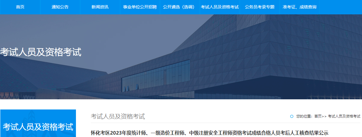近日,怀化人事考试网发布了《怀化考区2023年度统计师、一级造价工程师、中级注册安全工程师资格考试成绩合格人员考后人工核查结果公示》,其中明确怀化市共有7名一级造价师考生参加考后审核,审核结果为通过。
