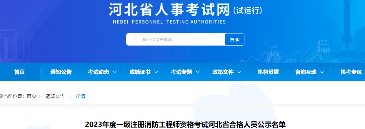 2023年河北省一级消防工程师合格人员公示名单通知原文如下: