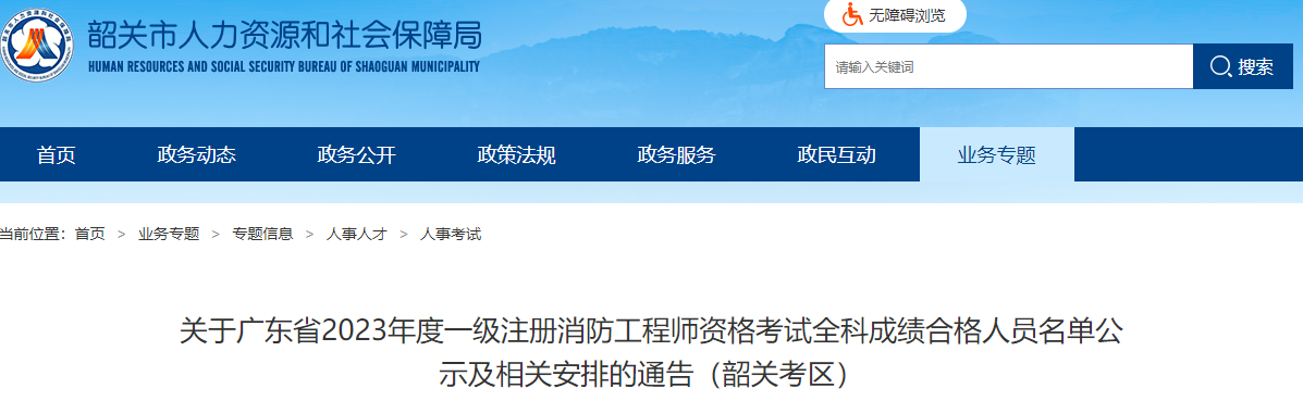 韶关市人力资源和社会保障局发布了《关于广东省2023年度一级注册消防工程师资格考试全科成绩合格人员名单公示及相关安排的通告(韶关考区)》,其中明确韶关市共有27人取得一级消防工程师合格成绩,并对相关人员信息予以公示。