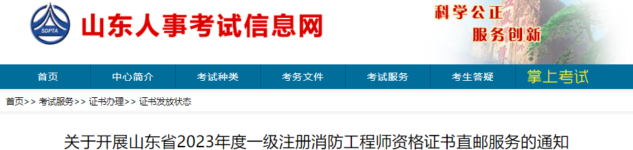 2023年度一级注册消防工程师资格考试山东省成绩合格人员即日起可办理“证书直邮”。现将有关事项通知如下: