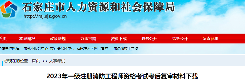 2024年1月29日,石家庄市人力资源和社会保障局发布了《2023年一级注册消防工程师资格考试考后复审材料下载》,其中明确石家庄一级消防工程师成绩合格人员需进行考后审核,核查材料有报名表、外调协查函反馈件、身份证等。