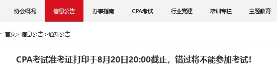 2024年CPA考试准考证下载打印入口将在8月20日20:00准时关闭,即将参加考试的小伙伴,千万不能忘记打印准考证!错过打印准考证将无法参加考试。