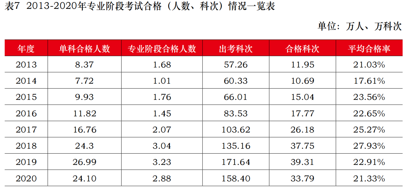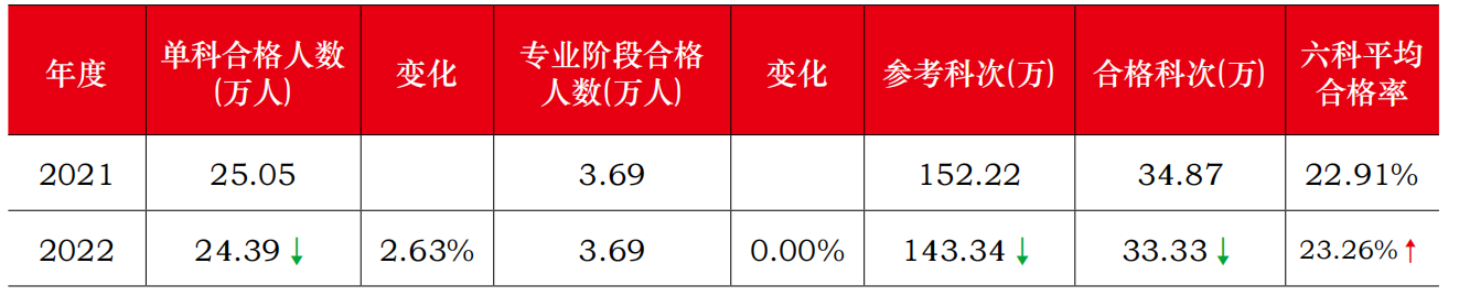 从中注协公布的2013年到2022年注会考试合格数据,可以大概看出:注册会计师专业阶段考试合格率基本在22%左右。
