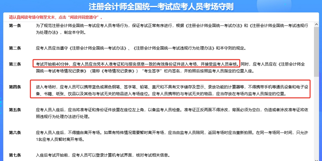 以下是《注册会计师全国统一考试应考人员考场守则》中部分内容: