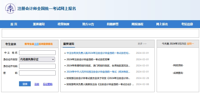 2024年注册会计师cpa报名交费入口