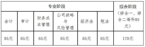 (注意:由于专业阶段考试的会计科目费用为“85元每科”,与其他5科费用不相同,请认真核对报名科目和报考费用金额总数)