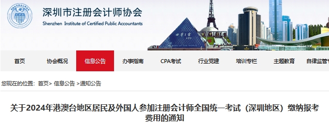 近日,深圳注册会计师协会发布了《关于2024年港澳台地区居民及外国人参加注册会计师全国统一考试(深圳地区)缴纳报考费用的通知》,4月完成预报名的考生要在6月13-28日(每天8:00-20:00)登录网报系统完成交费。