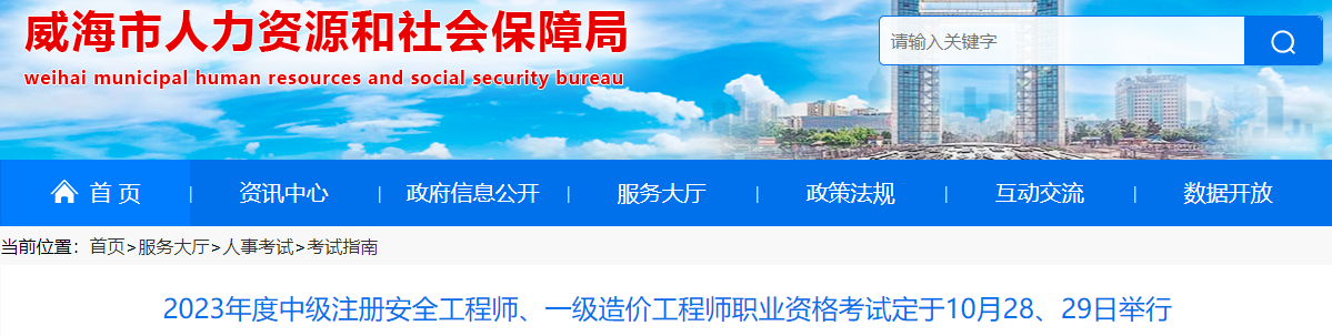 2023年10月25日,威海市人力资源和社会保障局发布了《2023年度中级注册安全工程师、一级造价工程师职业资格考试定于10月28、29日举行》,对威海一级造价师考试须知、特别提醒等事项作出具体安排。