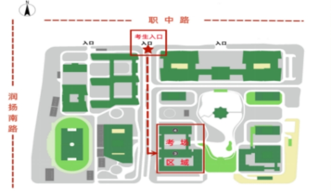 友情提示:请从扬州市职业大学西门(国展路,国展中心对面)进入,由于西门离考场有一段距离,请考生尽量提早到达考场所在教学楼,可乘坐101路公交车。